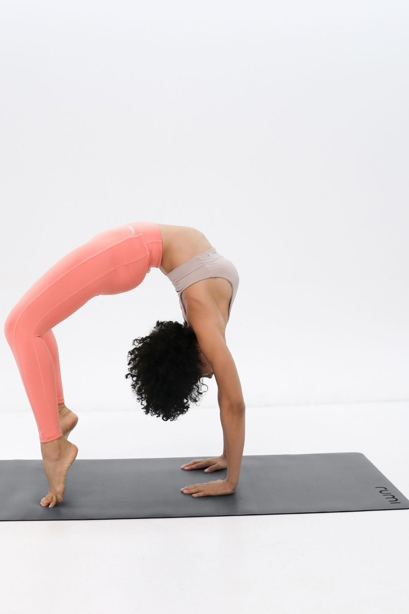 The natural rubber bottom of the mat provides a secure grip to the floor while you flow through your vinyasa.